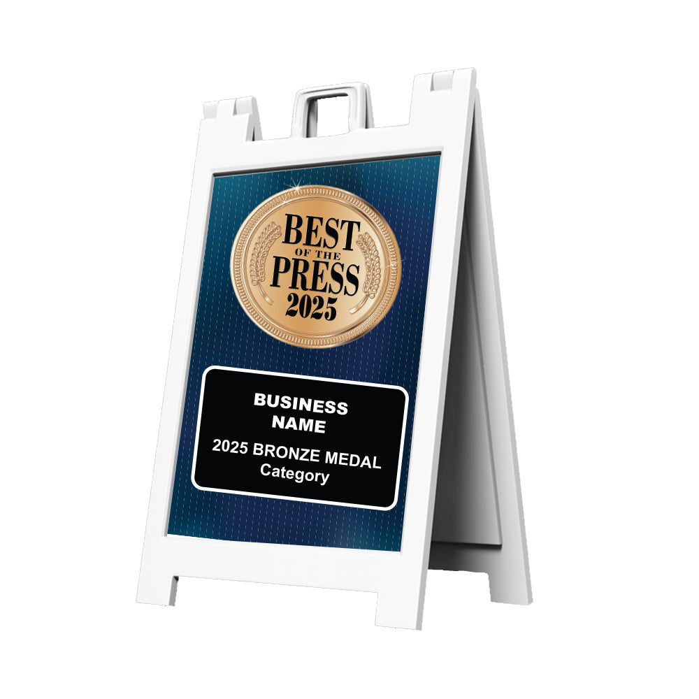 24” x 36” with print. Molded plastic 4mm Corrugated Plastic.