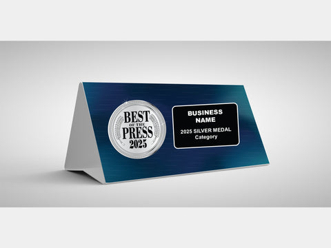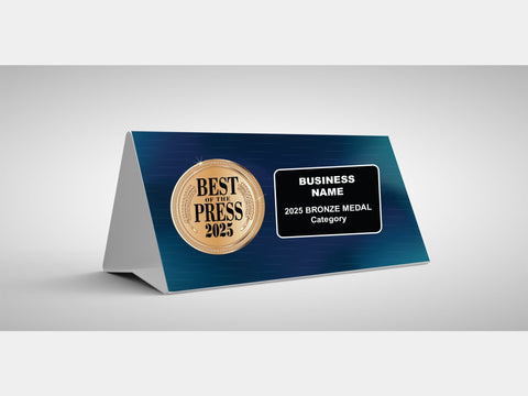 6”tall x 12” length 100 pound card stock. Folds to stand on a counter or table top.